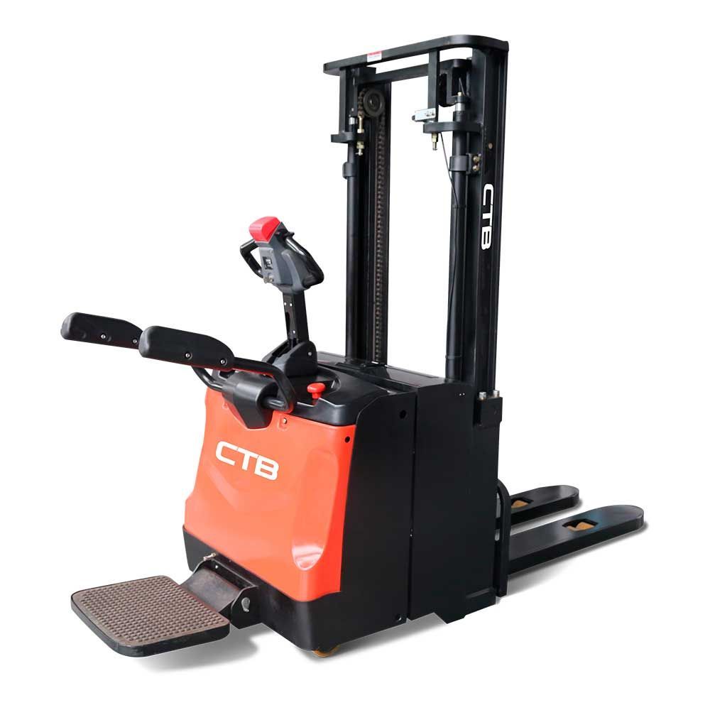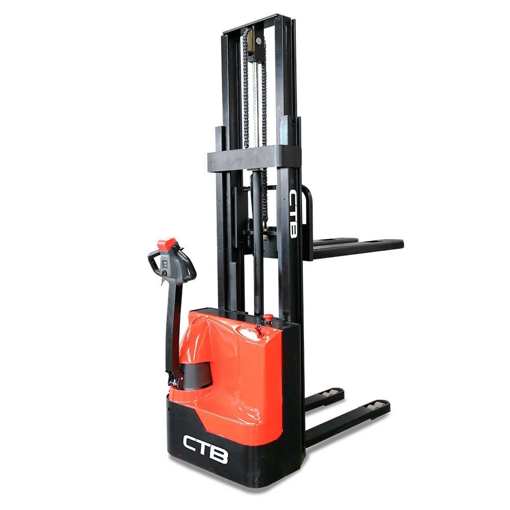 - Apiladores eléctricos: Sirven para elevar cargas de manera motorizada. Existen modelos que se manejan a pie y otras en las que los operarios van sobre ellos, de pie o sentados. Es ideal para almacenes donde hay que apilar cajas en altura.